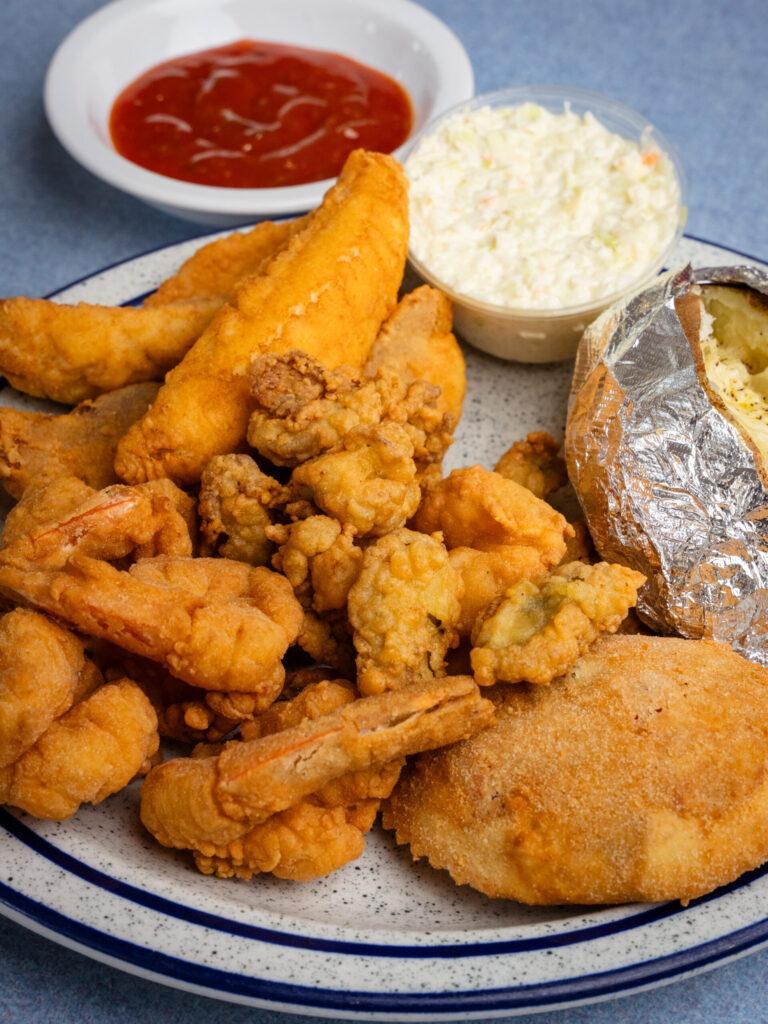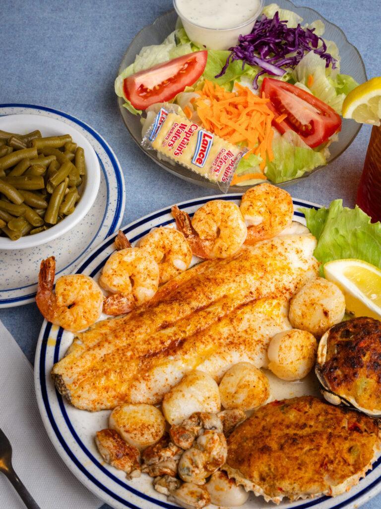Blue Bay Seafood is committed to serving high-quality seafood prepared with time-tested recipes. From crispy fried shrimp and golden fried flounder to broiled seafood platters and classic seafood combinations, every meal is prepared to deliver the flavors guests have come to love. Our restaurants are known for hearty portions, friendly service, and a relaxed coastal dining experience where families and friends can gather around a great meal.